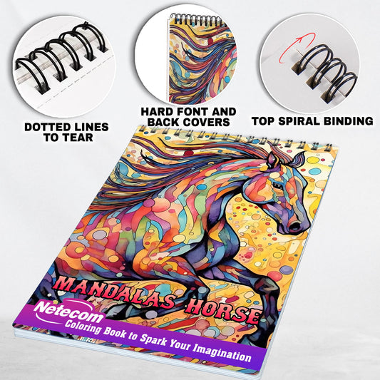 Horse Mandalas Spiral Bound Coloring Book, Delight i...