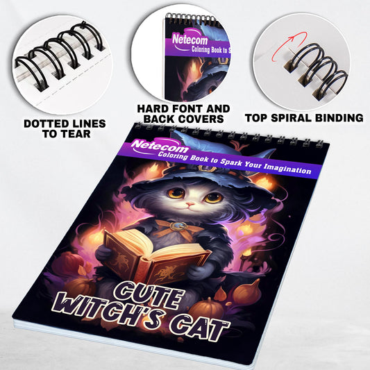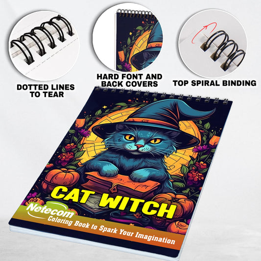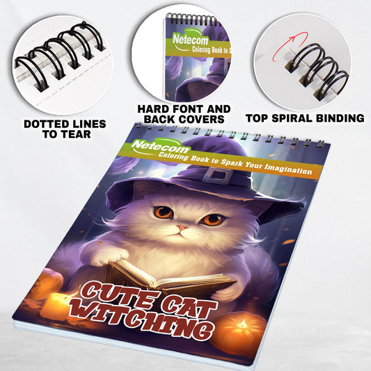 Cute Cat Witching Spiral Bound Coloring Book, Embark...