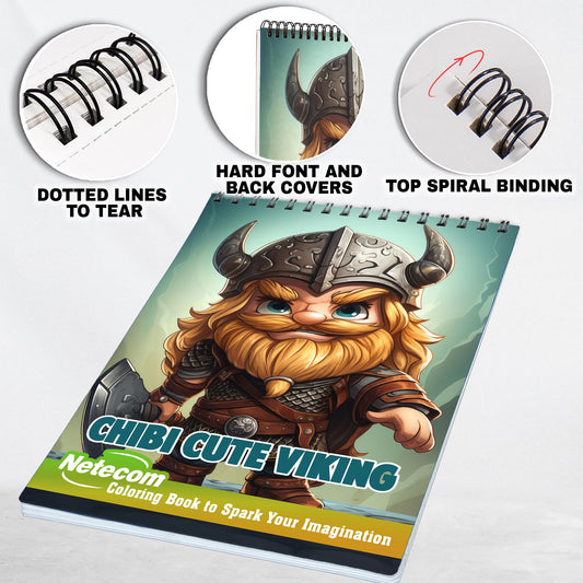 Chibi Cute Viking Spiral Bound Coloring Book, Unleas...