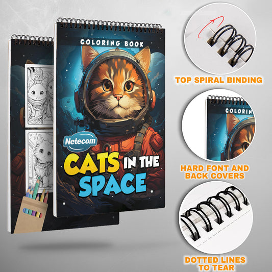 Cats In The Space Spiral Bound Coloring Book, Whimsi...