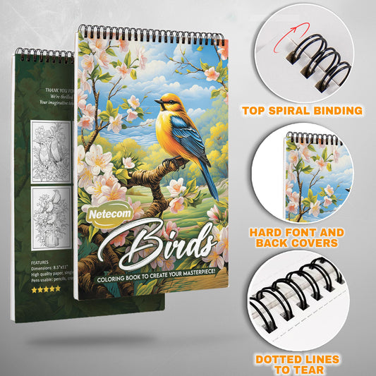 Birds And Flower Spiral Bound Coloring Book, Exquisi...