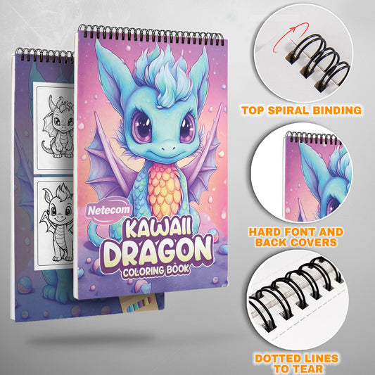 Kawaii Dragons Spiral Bound Coloring Book, Cute and ...
