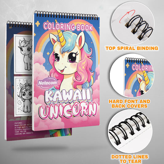 Kawaii Unicorn Spiral Bound Coloring Book, Magical K...