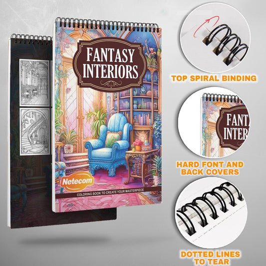 Fantasy Interiors Spiral Bound Coloring Book, Imagin...