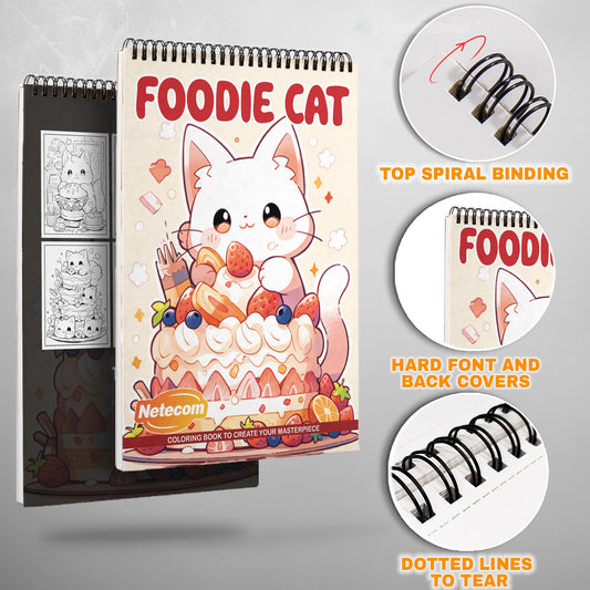 Foodie Cat Spiral Bound Coloring Book, Whimsical Foo...