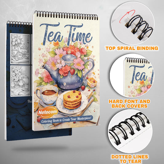Tea Time Spiral Bound Coloring Book, Serene Tea Time...