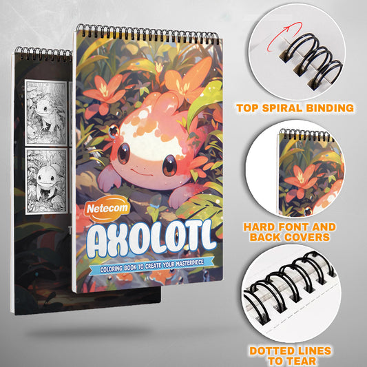Axolotl Spiral Bound Coloring Book, Adorable Axolotl...