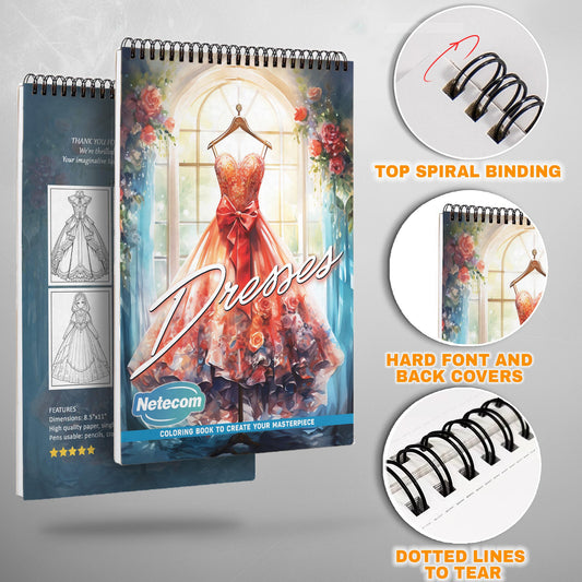Dresses Spiral Bound Coloring Book, Elegant Dresses ...