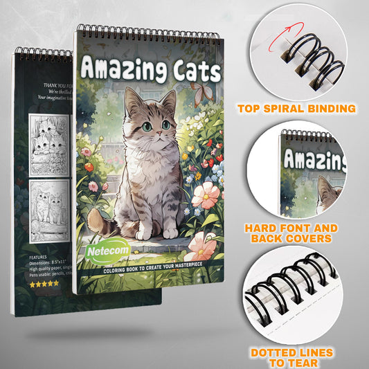 Amazing Cats Spiral Bound Coloring Book, Delightful ...