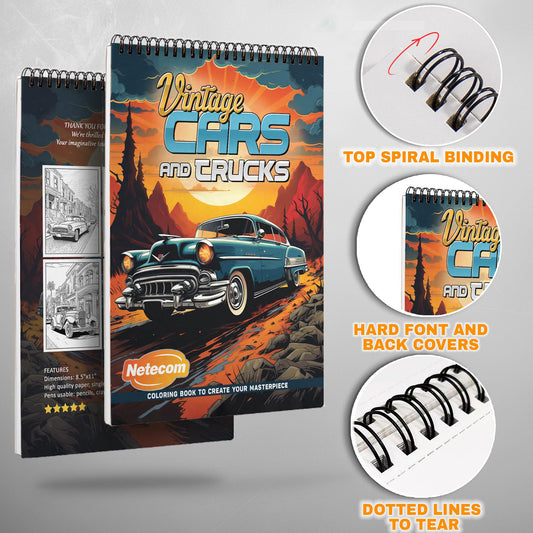 Vintage Cars and Trucks Spiral Bound Coloring Book, ...