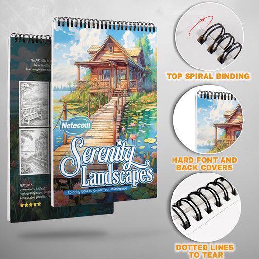 Serenity Landscapes Spiral Bound Coloring Book, Tran...