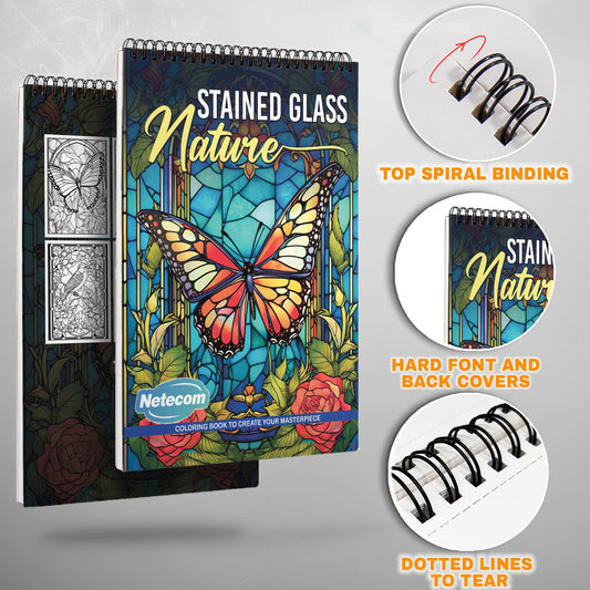 Stained Glass Nature Spiral Bound Coloring Book, Nat...