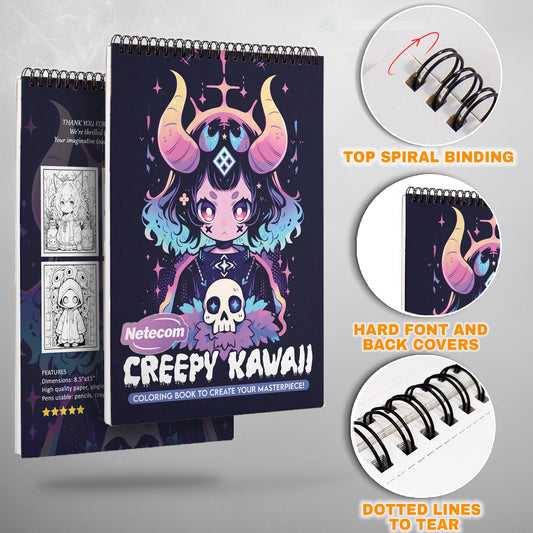 Creepy Kawaii Spiral Bound Coloring Book, Spooky Yet...