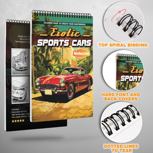 Exotic Sports Cars Spiral Bound Coloring Book, Sleek...