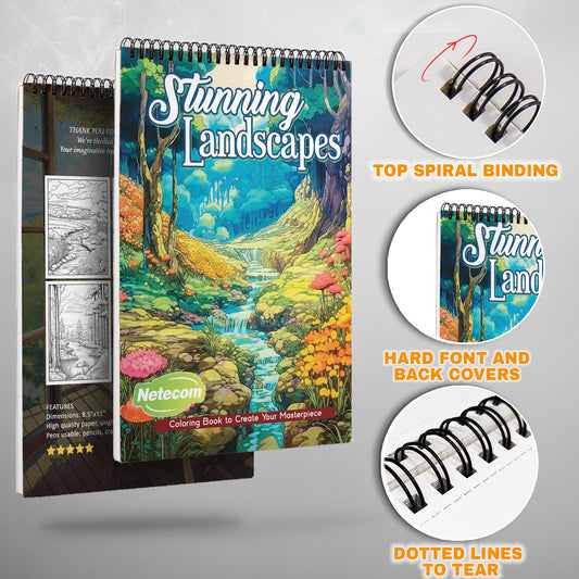 Stunning Landscapes Spiral Bound Coloring Book, Brea...