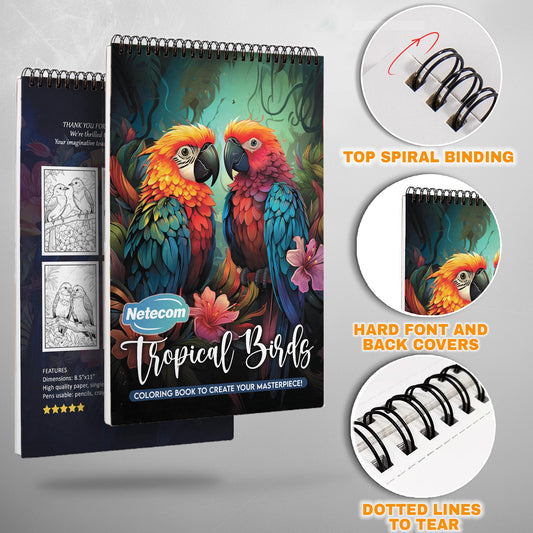 Tropical Birds Spiral Bound Coloring Book, Vibrant T...