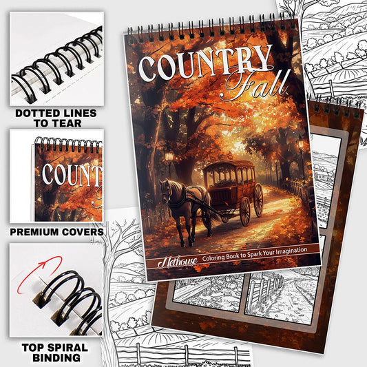 NETHOUSE Country Fall Coloring Book For Adults Relax...