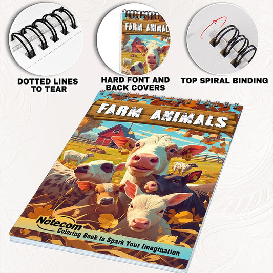 Netecom Farm Animals Coloring Book for Adulst, Spira...