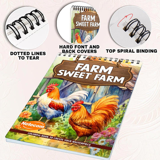 Netecom Farm Life Coloring Book for Adults, Spiral B...