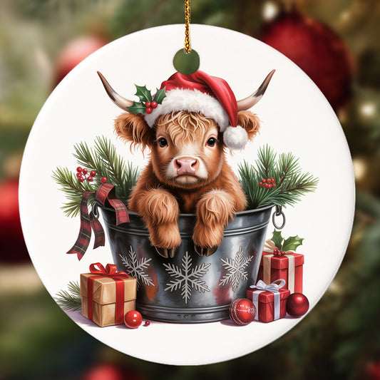 Netecom Funny Highland Cow in Bucket Ornament, Highl...