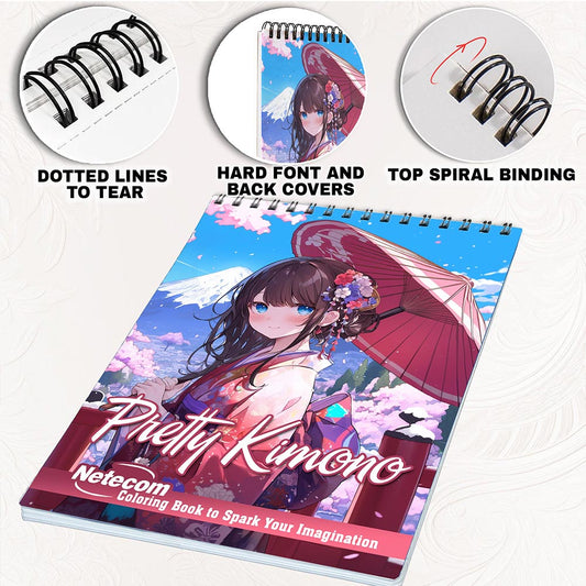 Netecom Pretty Kimono Coloring Book Spiral Bound for...