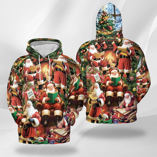 Netecom Santa Claus Reading Book Christmas Print Hoo...