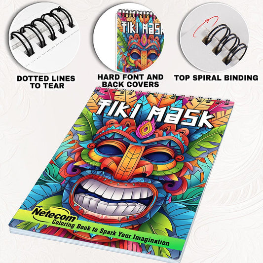 Netecom Tiki Mask Coloring Book for Adults, Spiral B...