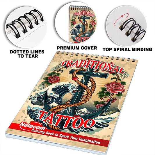 Netecom Traditional Tattoo Coloring Book Spiral Boun...