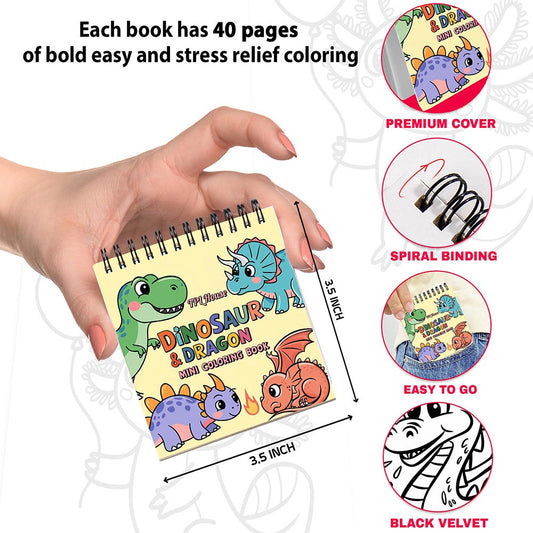 Animal Mini Coloring Book Spiral Bound for Adult, Pack 6, 3.5” x 3.5” Pocket Size, 40 Coloring Pages Stress & Anxiety Relief, Travel for Women Men