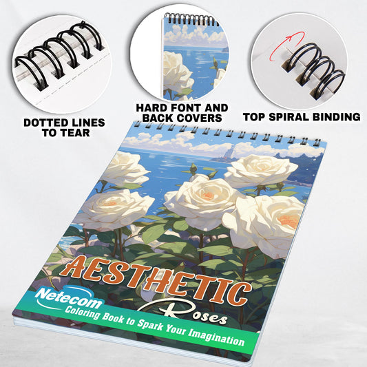 Aesthetic Roses Spiral Bound Coloring Book, Discover 30 Mesmerizing Coloring Pages in the Aesthetic Roses Coloring Book