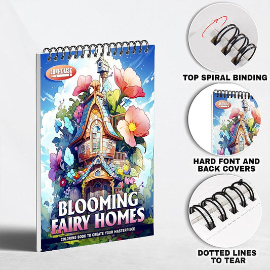 LBKHOUSE Blooming Fairy Homes Coloring Book Spiral B...