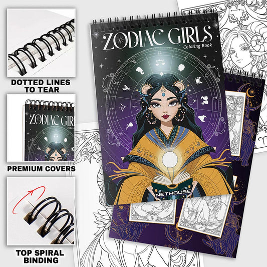 NETHOUSE Zodiac Girls Spiral Coloring Book for Adult...