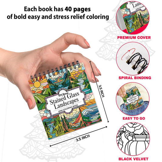 Stained Glass Mini Coloring Book Spiral Bound for Ad...