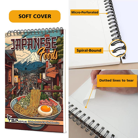 TSPVOTUS Japanese Foods Coloring Book for Adult, Spi...