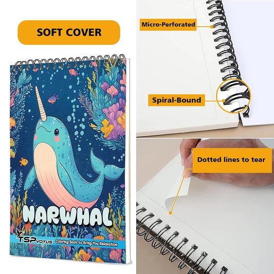 TSPVOTUS Narwhal Coloring Book for Adult, Spiral Bou...