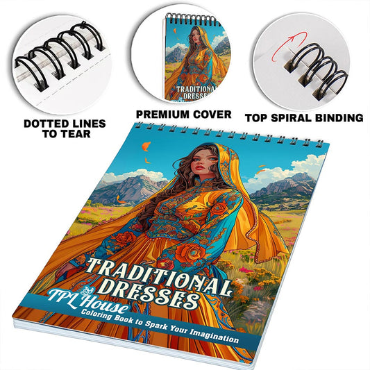 TPLHOUSE Traditional Dresses Coloring Book for Adult...