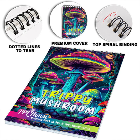 TPLHOUSE Trippy Mushroom Coloring Book for Adults, S...