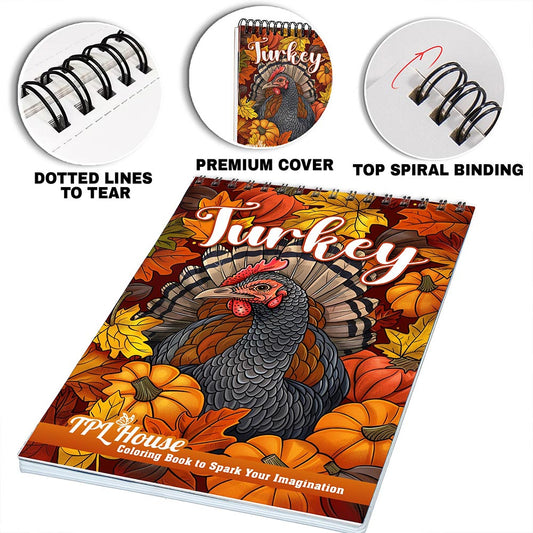 TPLHOUSE Turkey Coloring Book for Adults, Spiral Bou...