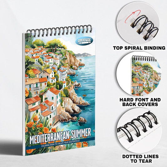 LBKHOUSE Mediterranean Summer Coloring Book Spiral B...
