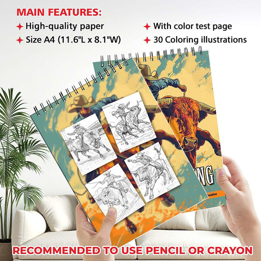 MOTAVYN Bull Riding Coloring Book for Adults, Spiral...