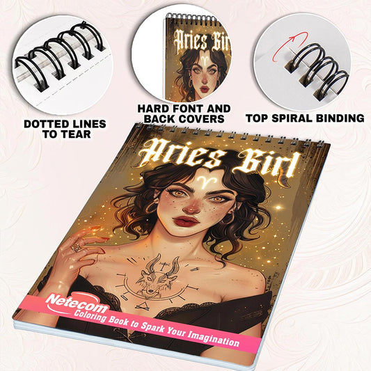 Netecom Aries Girl Coloring Book for Adults, Spiral ...