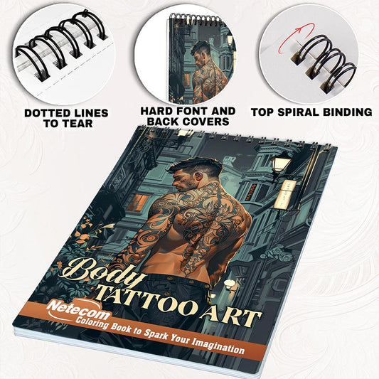 Netecom Body Tattoo Art Coloring Book Spiral Bound f...