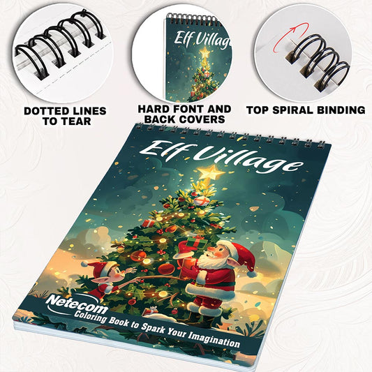 Netecom Elf Village Coloring Book Spiral Bound for A...