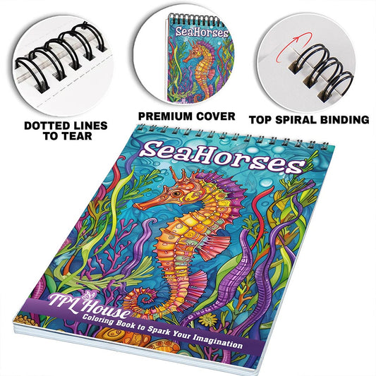 TPLHOUSE Seahorse Coloring Book for Adults, Spiral Bound, Soft Cover