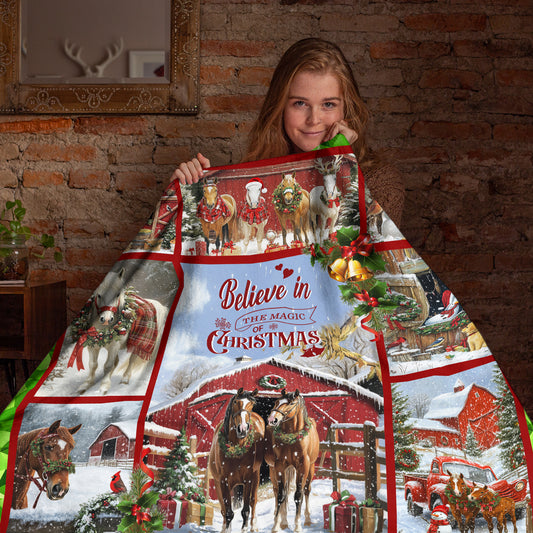 Netecom Horse Christmas Blanket, Farmhouse Winter Th...