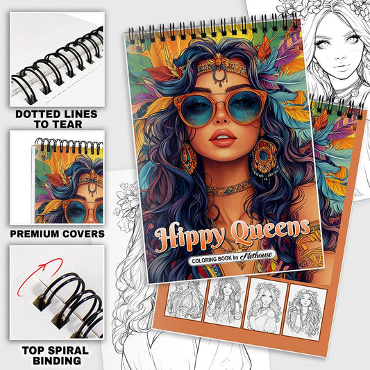 NETHOUSE Hippy Queens Spiral Coloring Book for Adult...