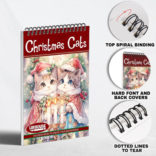 LBKHOUSE Christmas Cats Coloring Book Spiral Bound f...