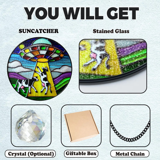 Netecom Funny Alien and Cow UFO Stained Glass Suncat...