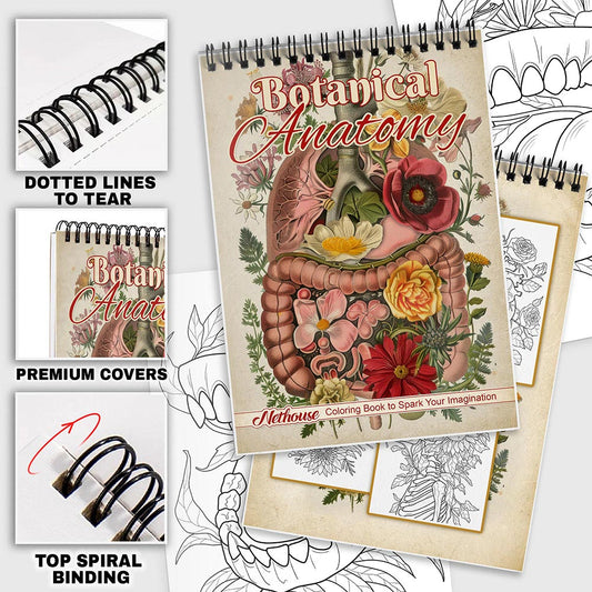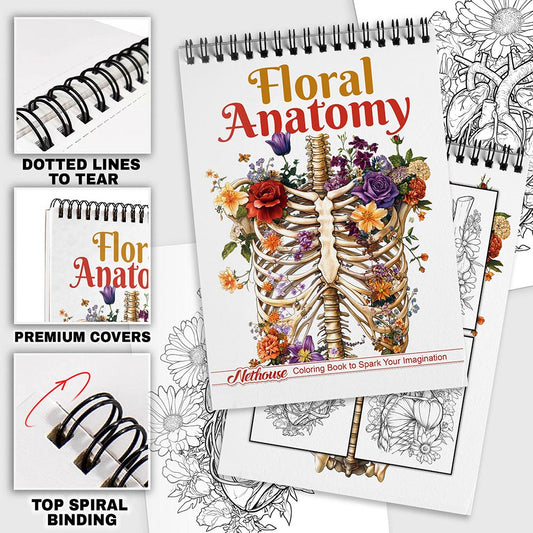 NETHOUSE Floral Anatomy Spiral Coloring Book for Adu...