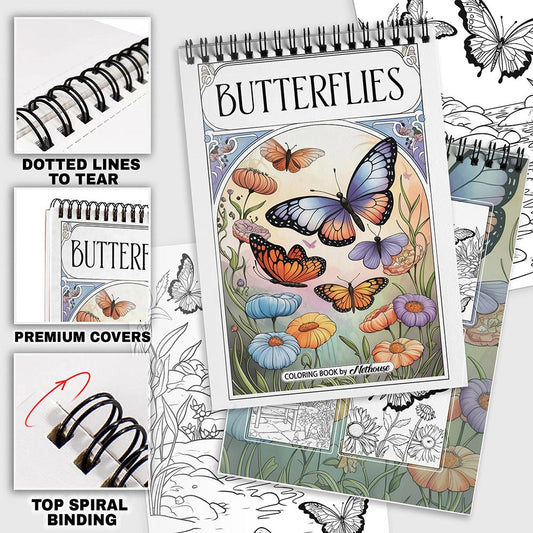 NETHOUSE Butterflies Spiral Coloring Book for Adults...
